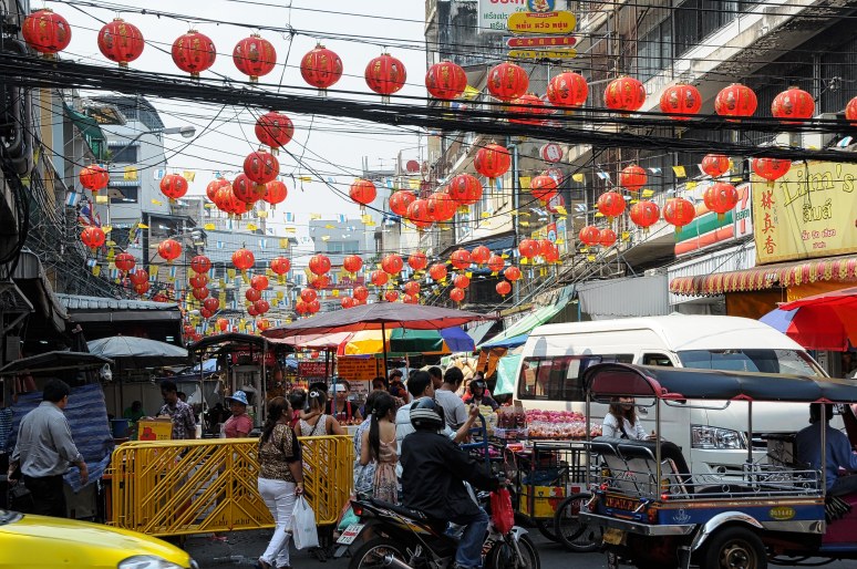 Decorations festooned the streets for the Chinese New Year’s Eve that had just passed.
