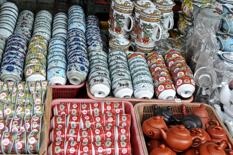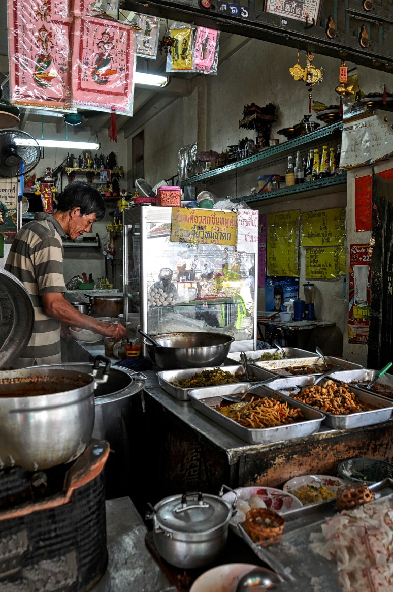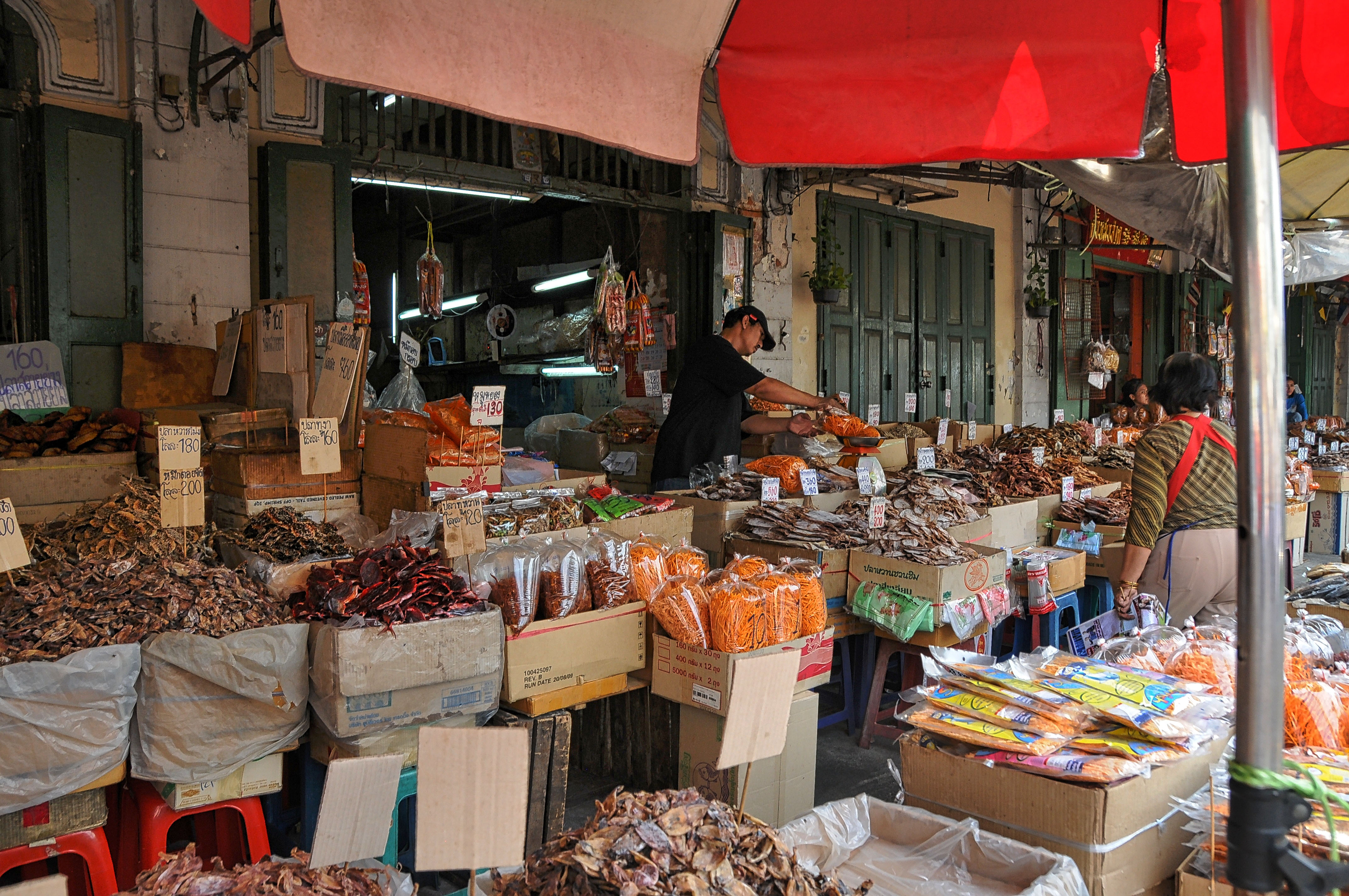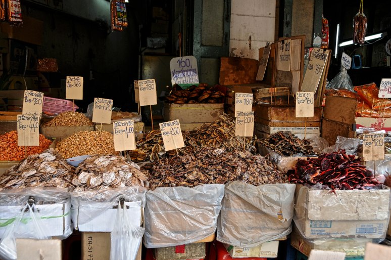 Between the Wat Pho Buddhist Temple and the Hua Lamphong station is Chinatown. This area is full of character and culture. Vendors took up most of the sidewalks and passageways, allowing single-file walking only. The short walk was double in time due to many stops to capture the moment.