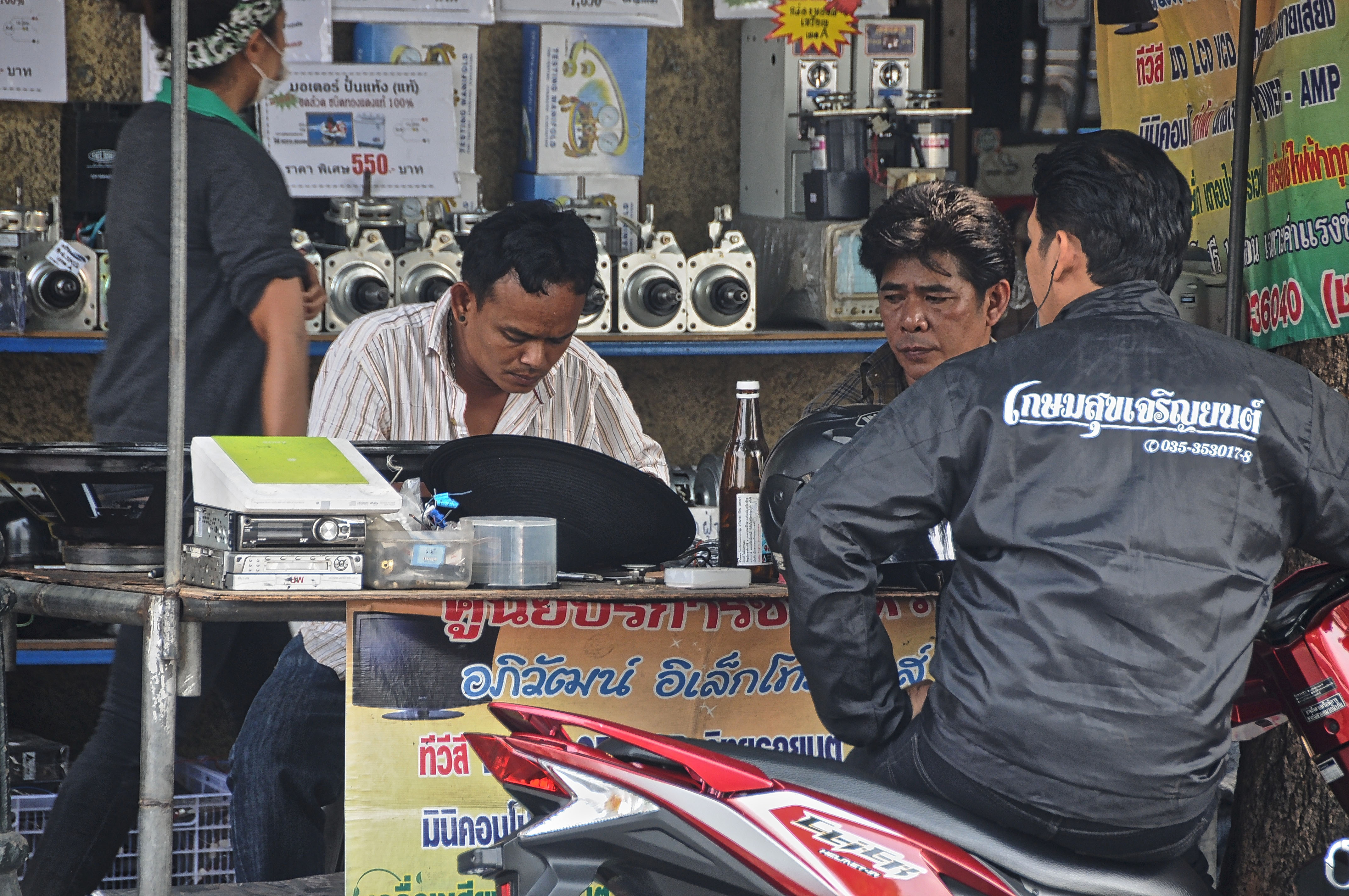 I don’t remember if these fellows were reconing speakers or rewiring transformers