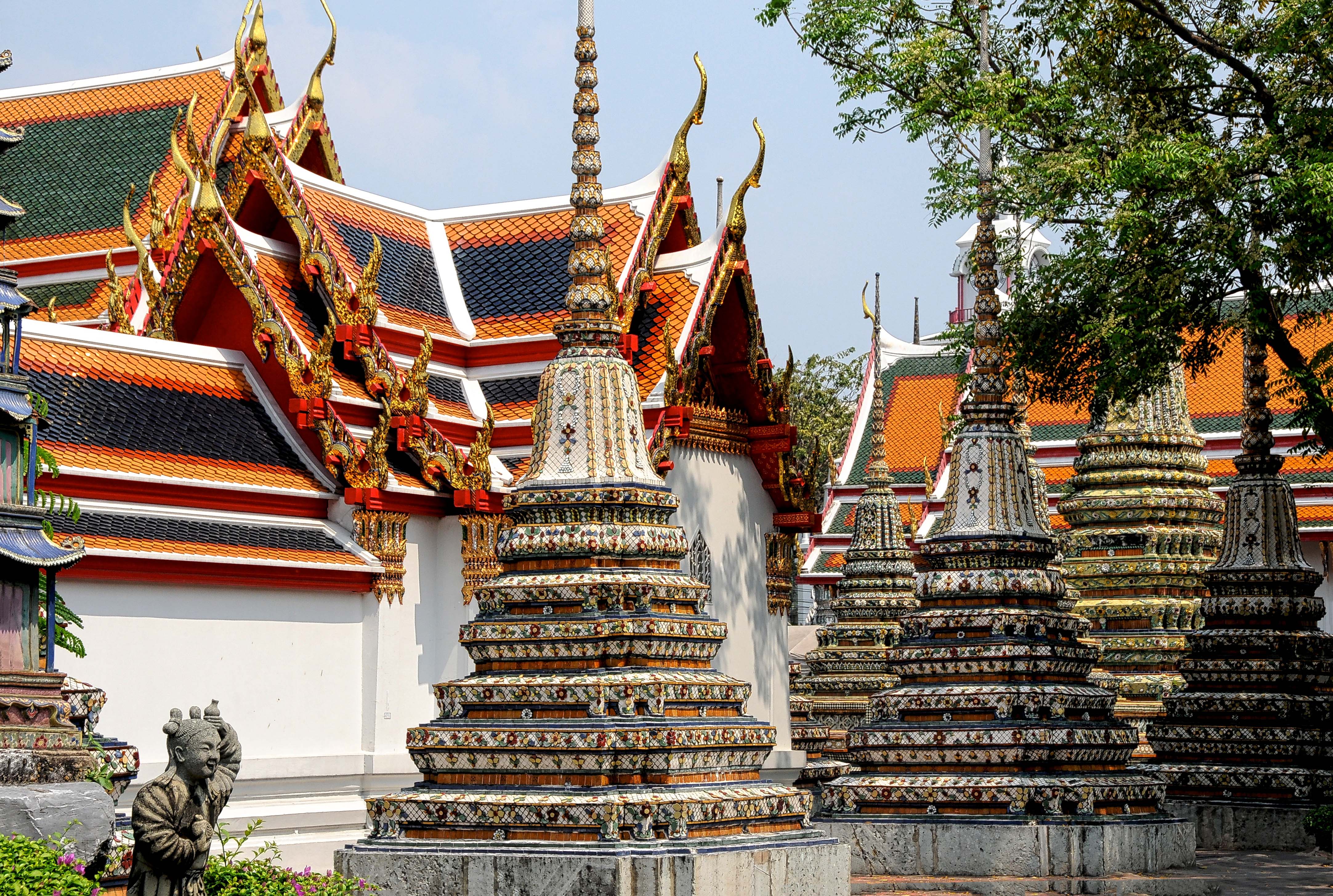 Wat Pho is a Buddhist temple located next to the Grand Palace in the Phra Nakhon district. It is one of the largest (80,000 square metres) and oldest of monasteries in Bangkok and is home to more than 1,000 Buddha images.