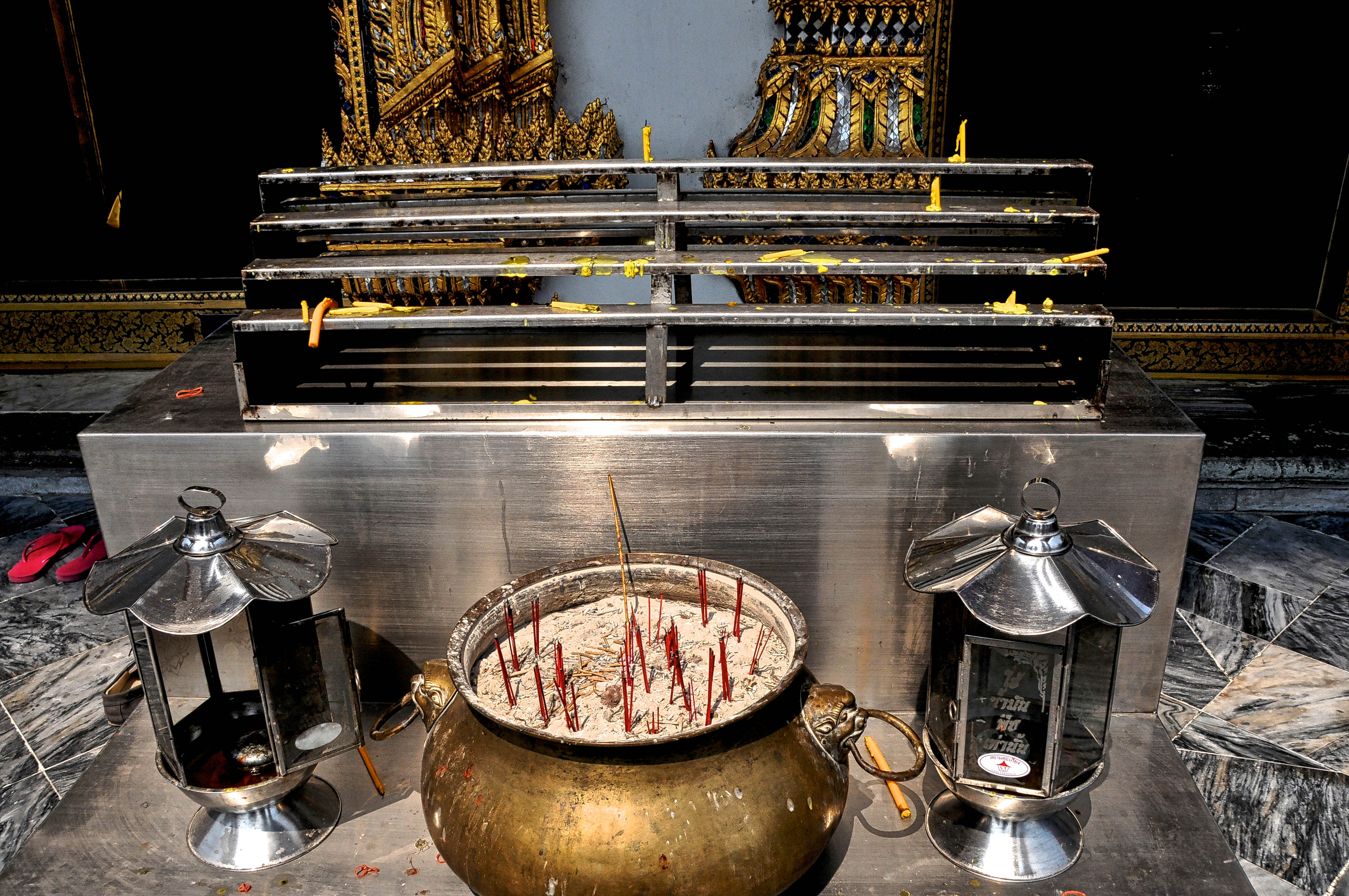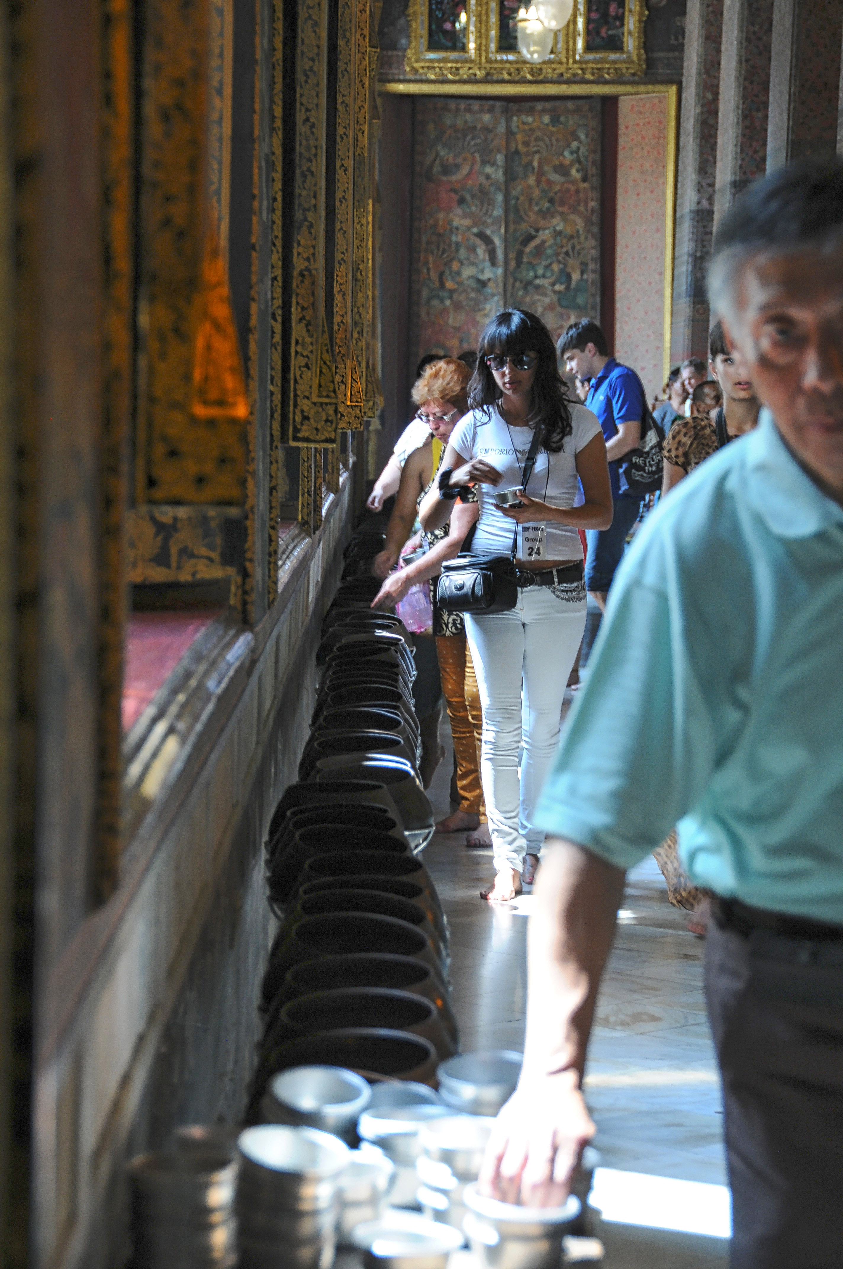 108 bronze bowls indicate 108 auspicious characters of Buddha. People drop coins in the bowl as it is believed to bring good fortune.