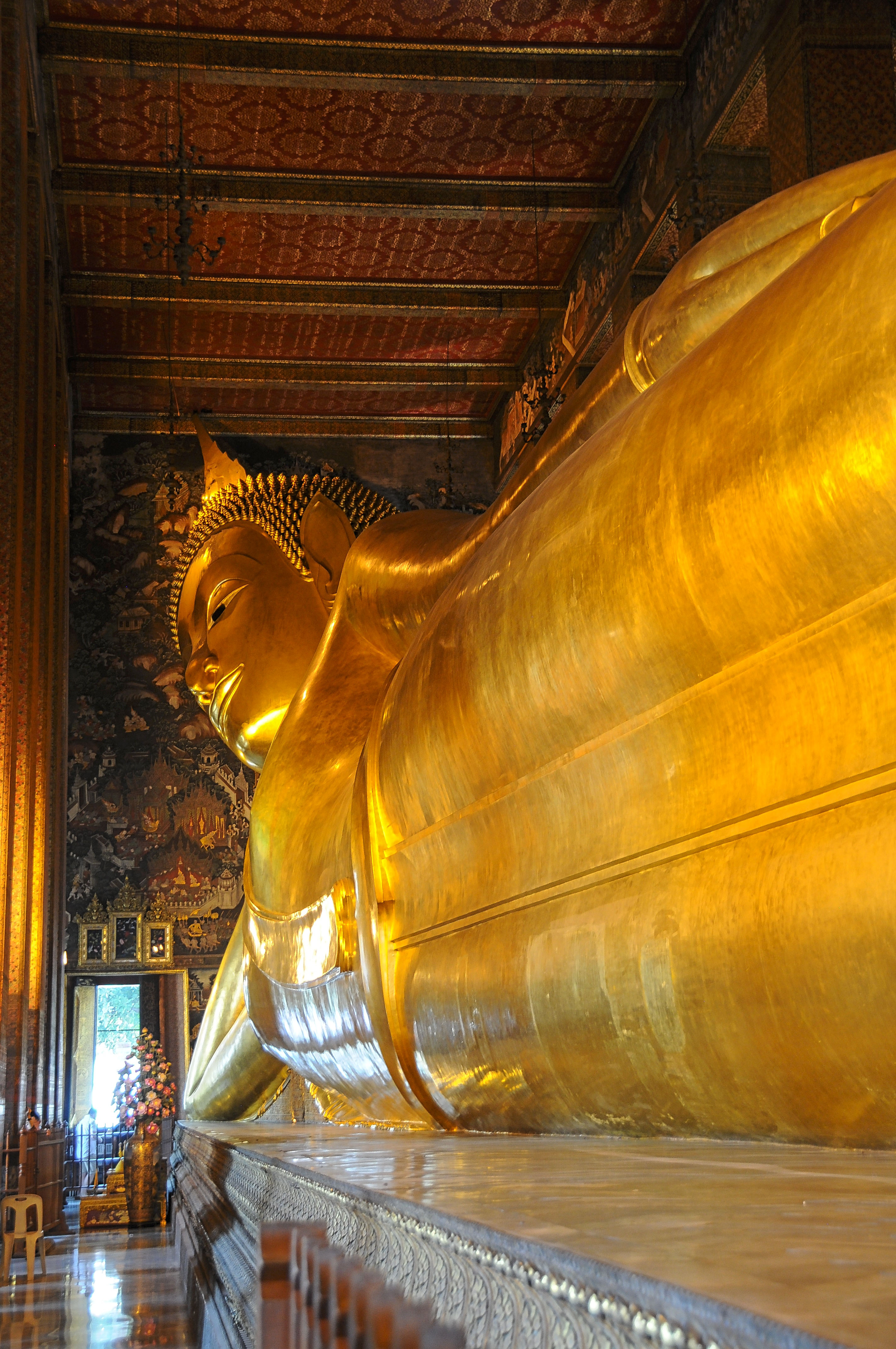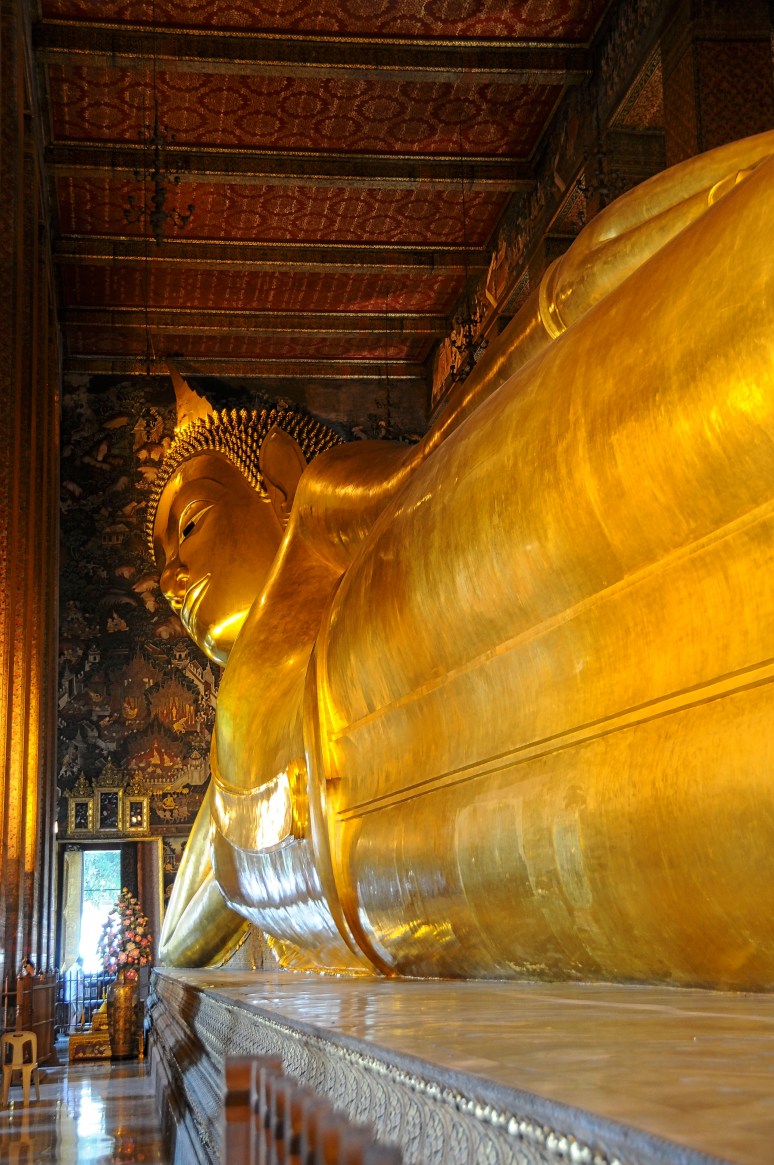 The Reclining Buddha (15m high x 43m long) is made of plaster bricks and gilded gold.