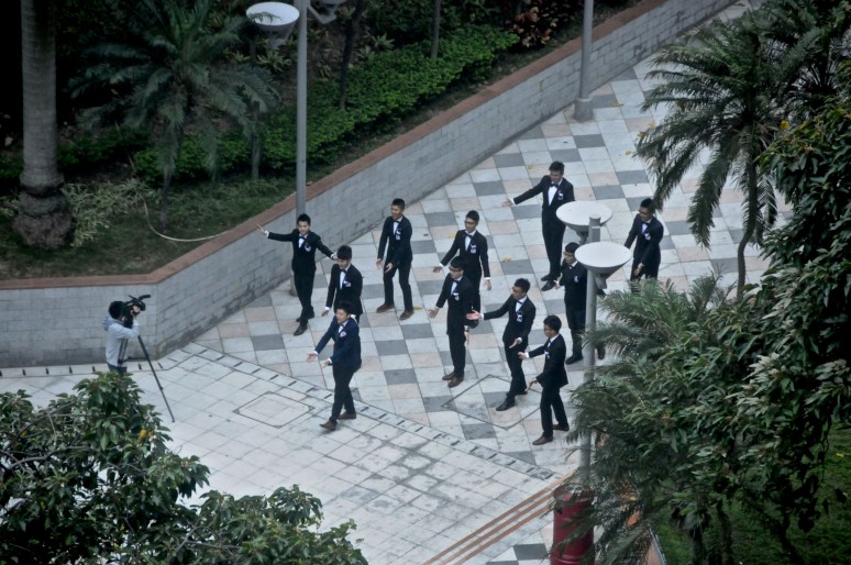 Entertaining the crowds in Kowloon after a Laser Light Show