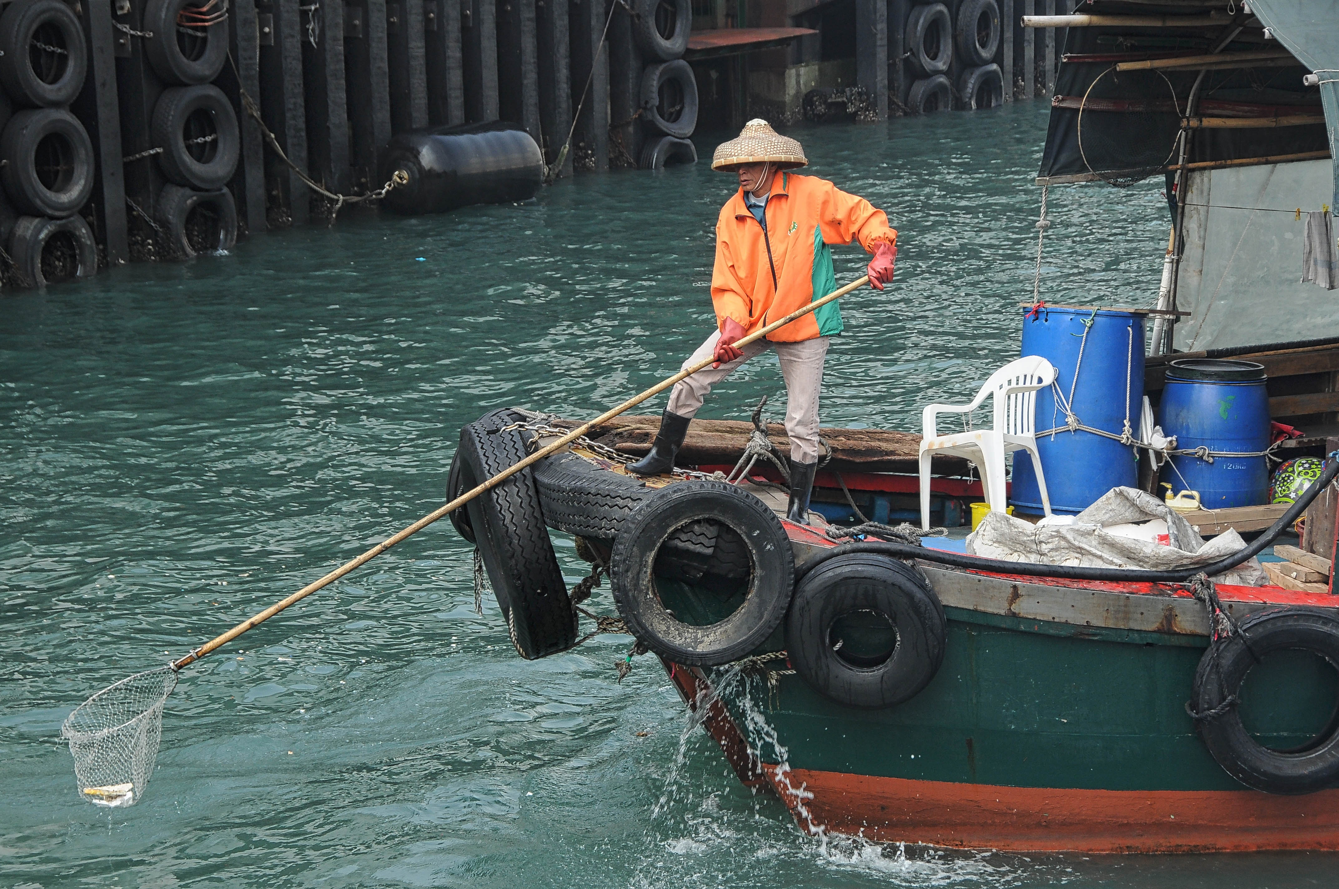 Collecting garbage in the water at Central Piers