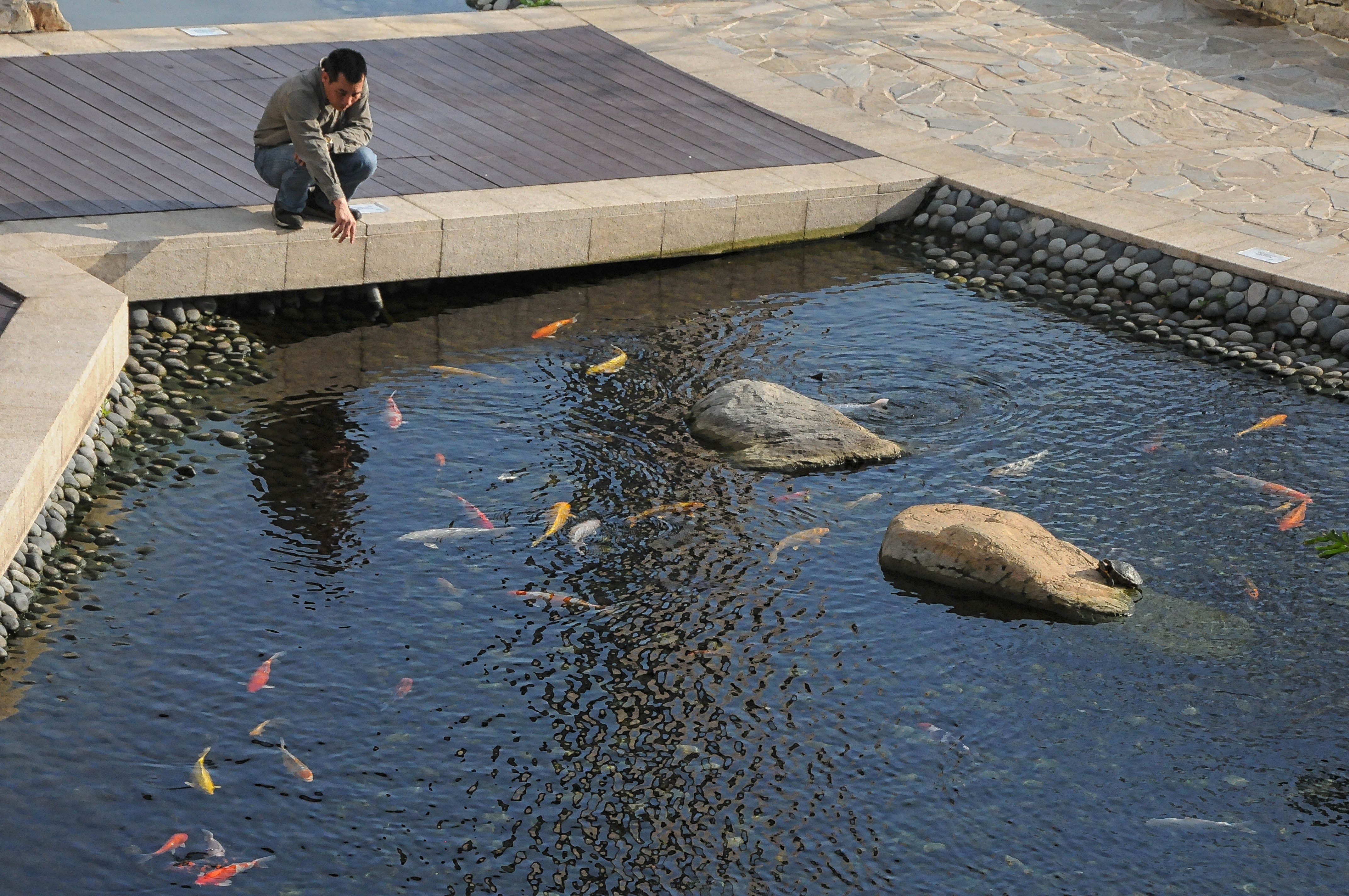 Checking out the goldfish at Lohas Park