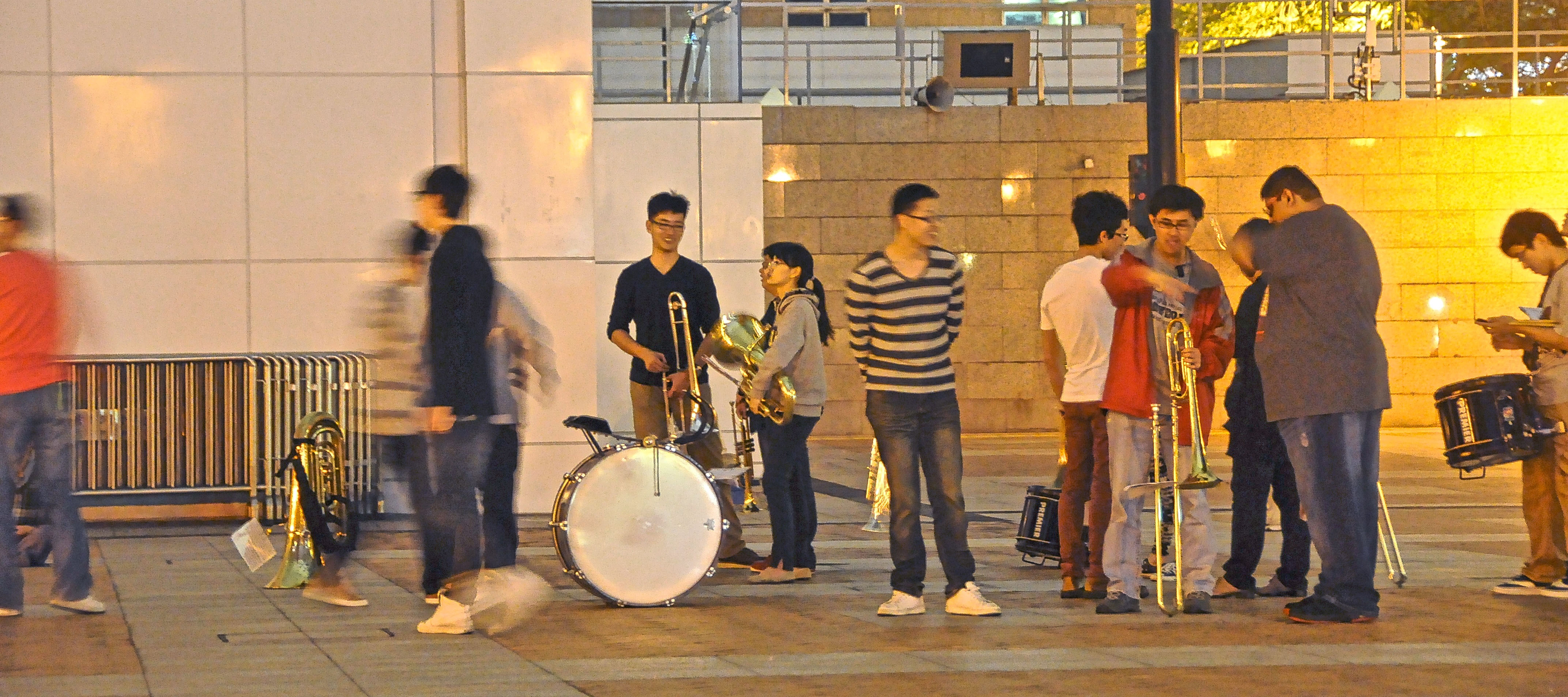 Waiting their turn to practice in a marching band