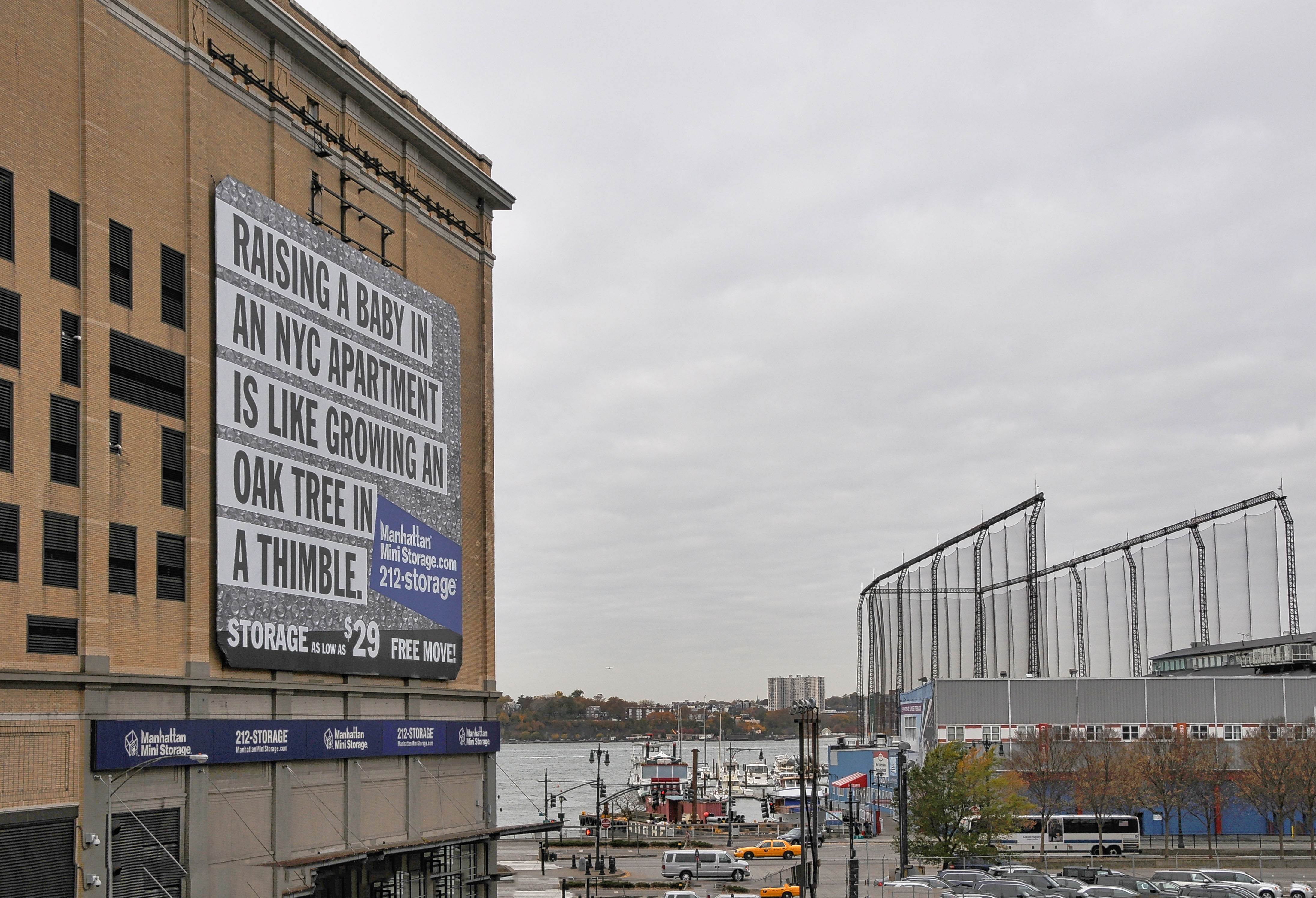 I love the advertisement on the side of the building. I believe that is a golf driving range in the distance.
