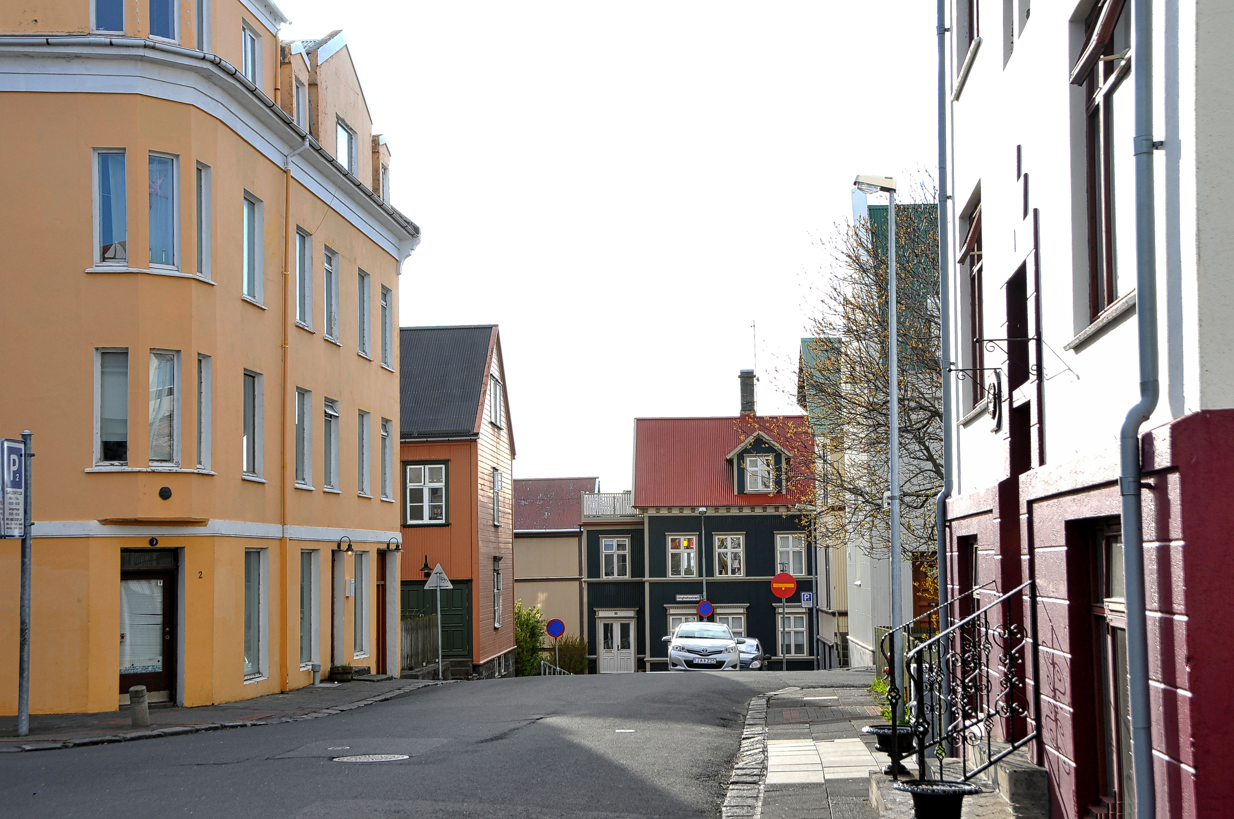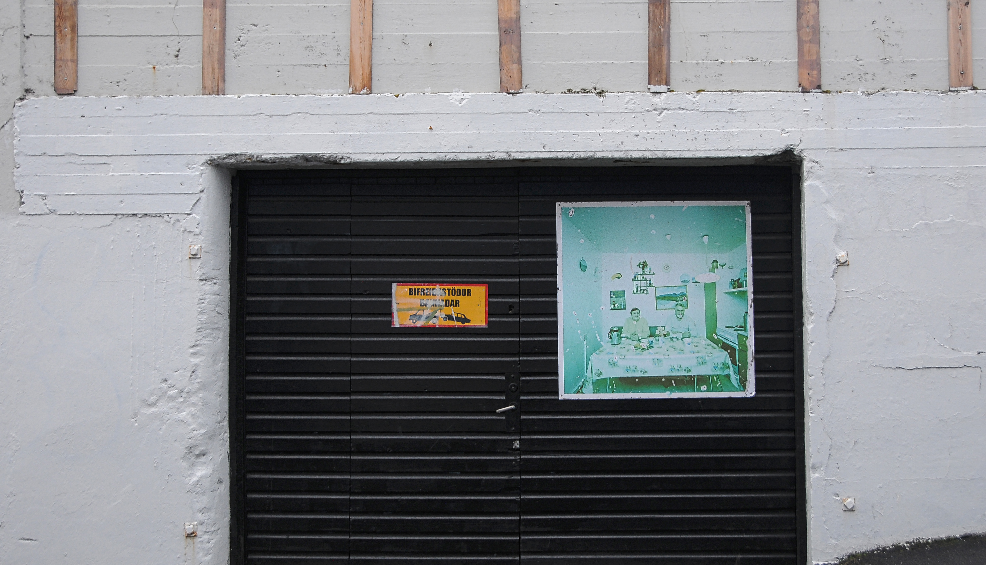 The small sign depicts a car being towed. This is the Icelandic version of “No parking”. It tells you like it is regardless of your language.