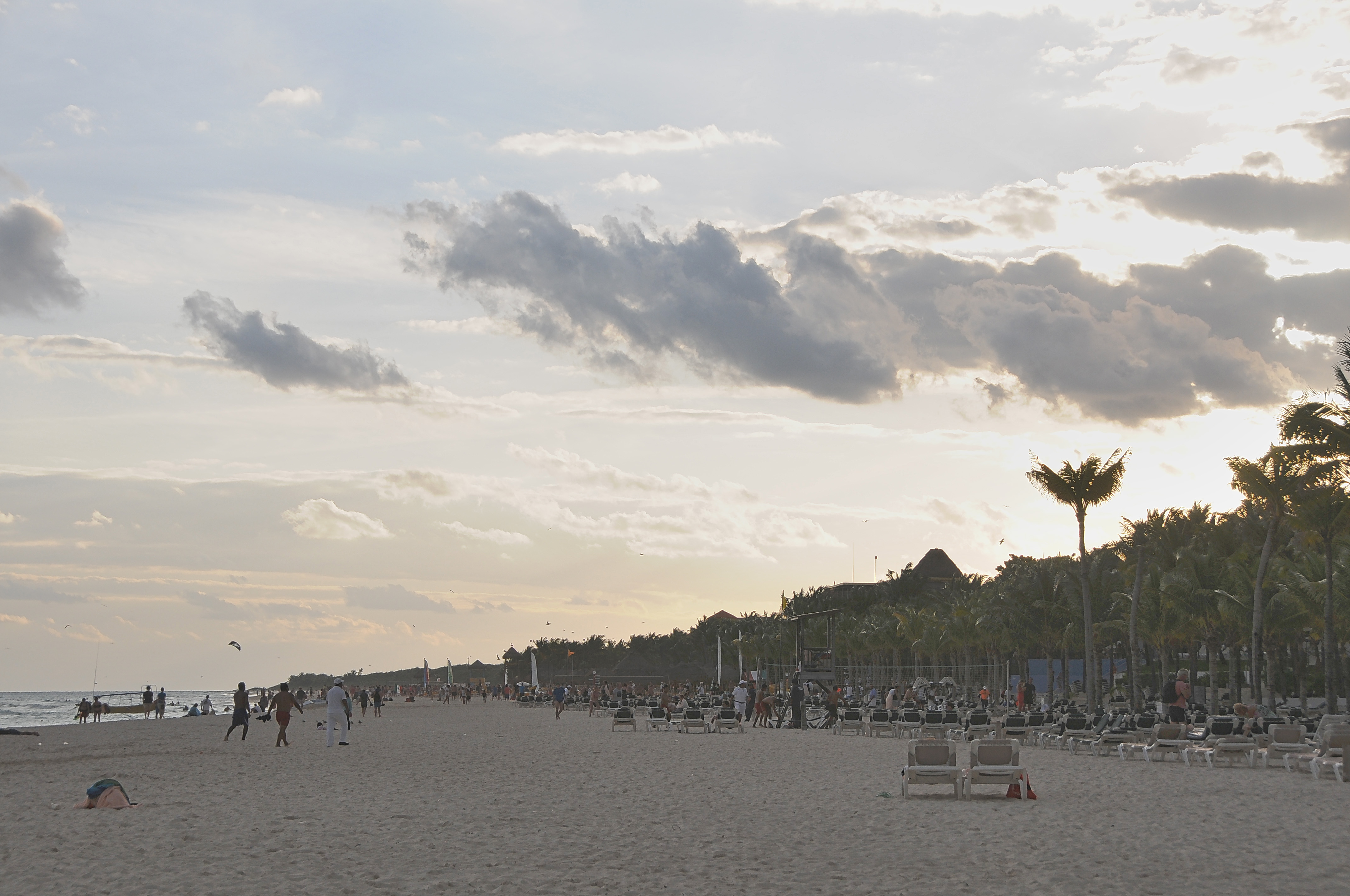 Our hotel was located along a beautiful beach. White soft sand that stretches for miles north and south. Most of these photos are shot along this beach from Quinta Avenida to our hotel, Riu Palace Mexico.