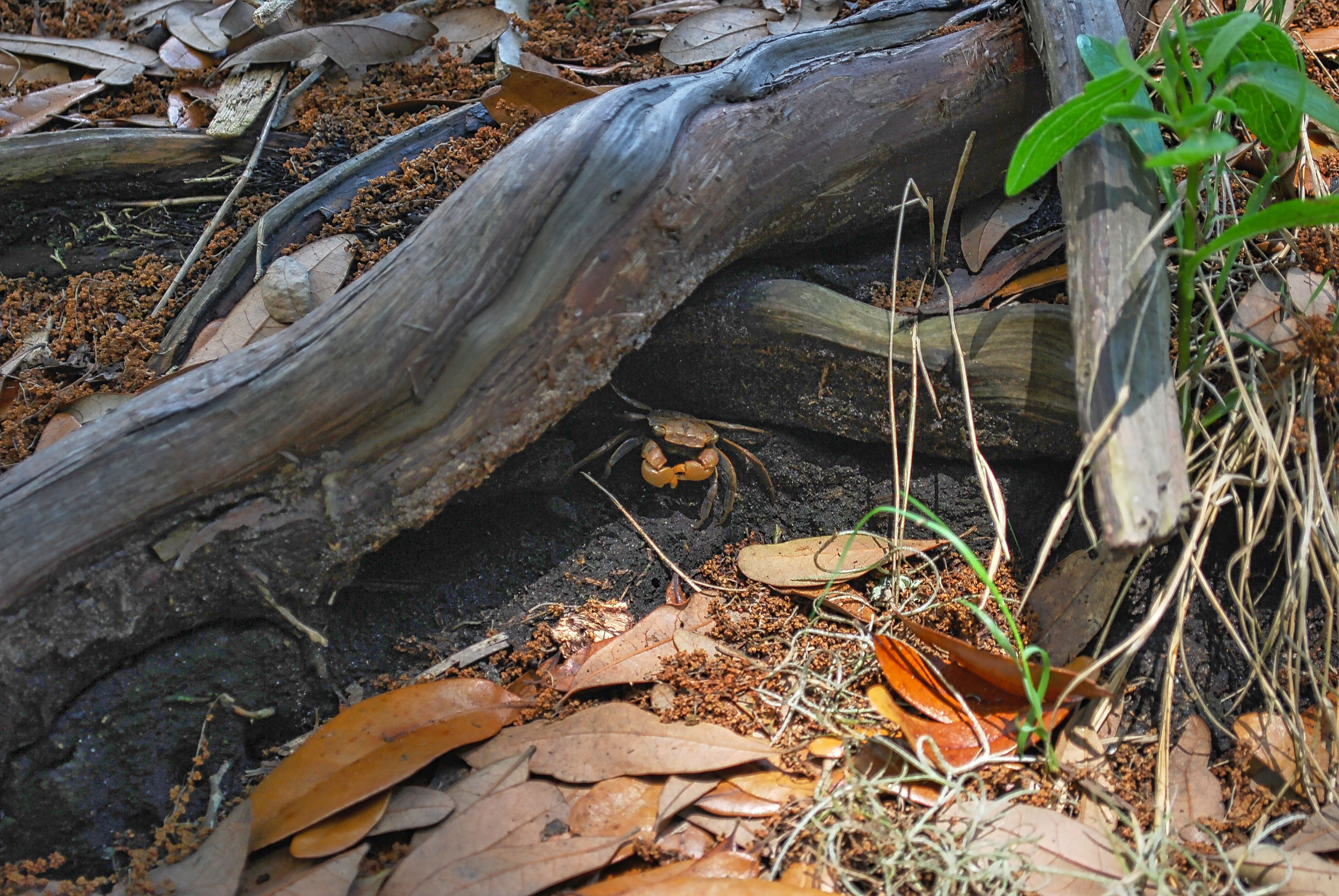 Some small critters makes this humid environment their home. A frog sitting still, thinking we don’t see him.