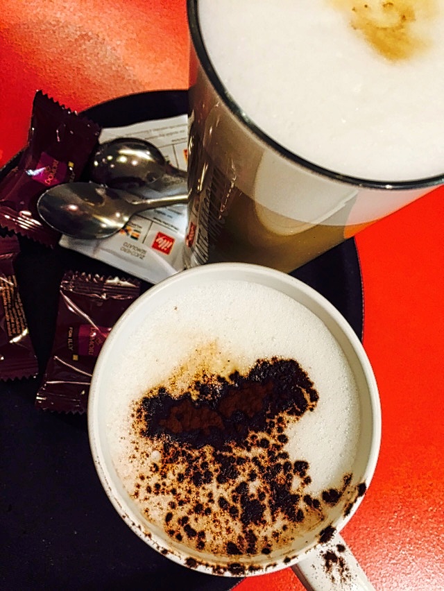Cappucino and Macchiato at an Illy Coffee House in the Gare du Midi Bruxelle Station. We stopped for a coffee before boarding our train back to Amsterdam. I liked how they served the cappuccino in a tall glass. I didn’t enjoy the moment of carrying this on a small tray to my table.