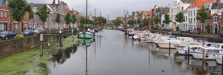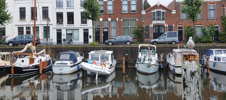 A mix of residential, commercial (small shops) and boats on Aelbrechtskolk in the Delfshaven area.