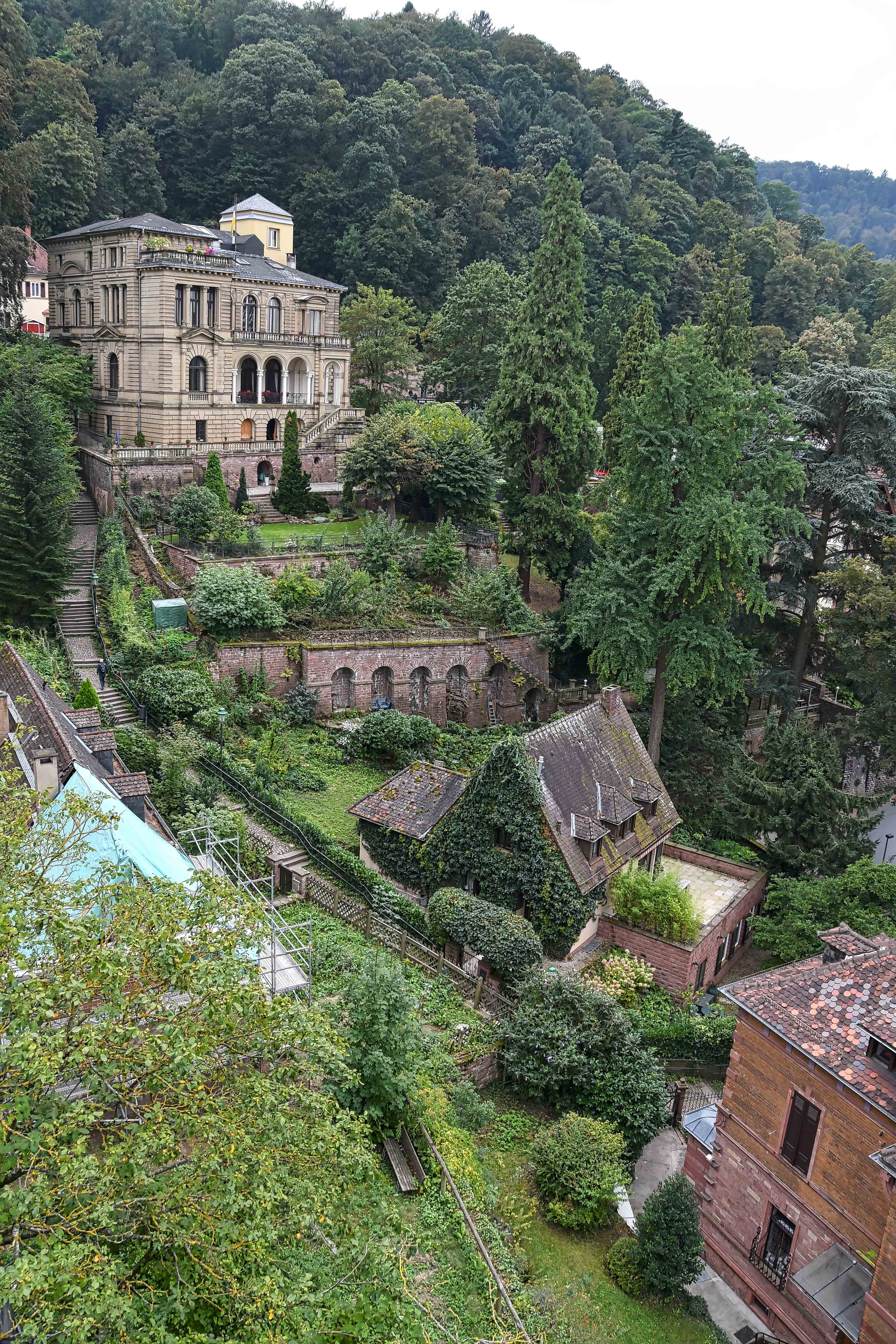 Looking straight down from the west side of Heidelberg Castle