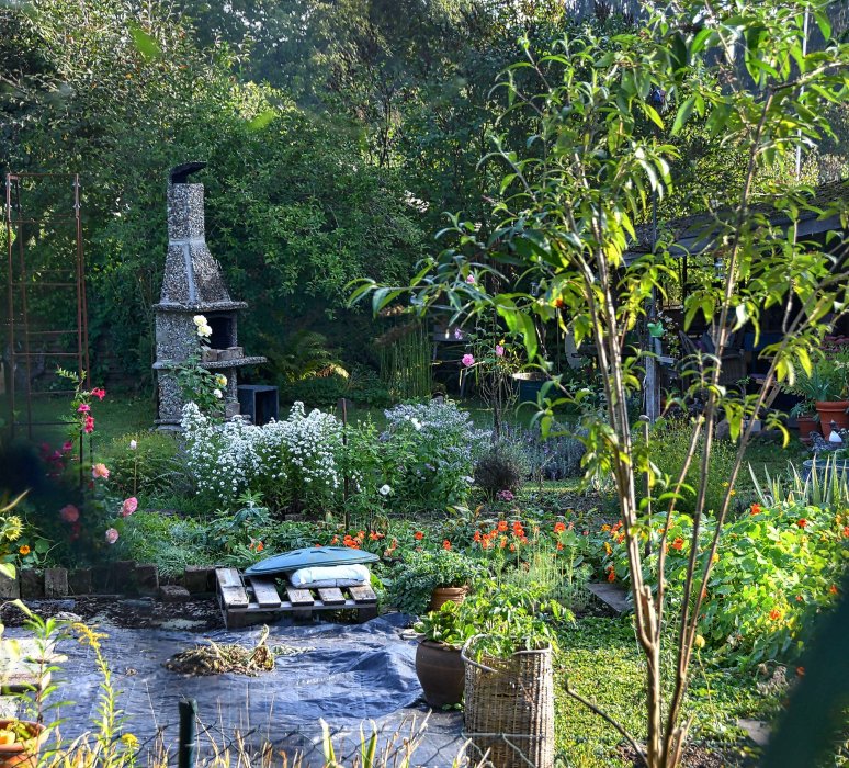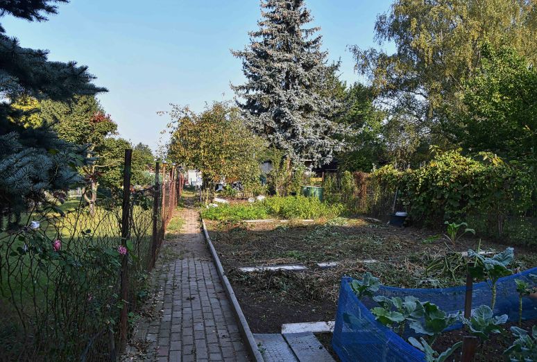 This and the following three photos depict a community/allotment garden. Small plots of land are either owned or rented by individuals wanting some green space to grow vegetables or flowers. Some of these plots may have a small playground for their little ones.