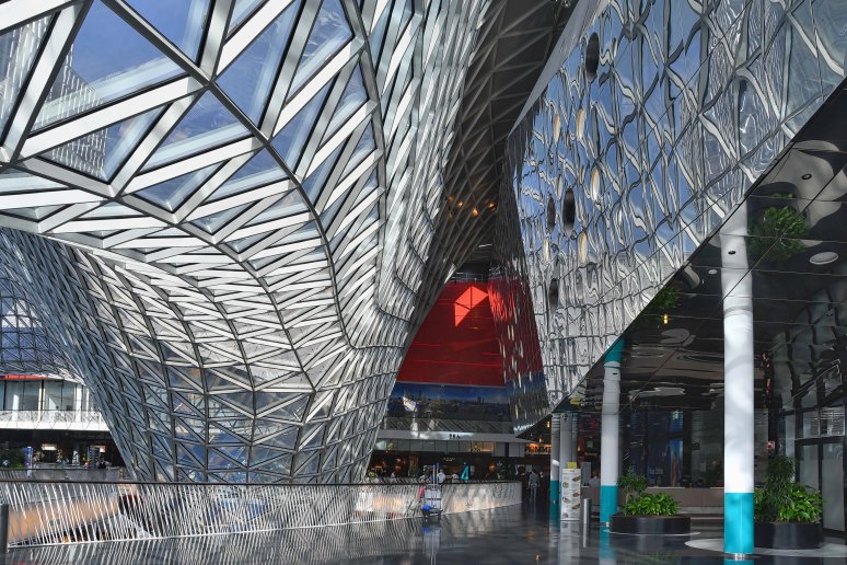 A variety of escalator lengths can take you directly to different floors of the mall without switching on each floor.
