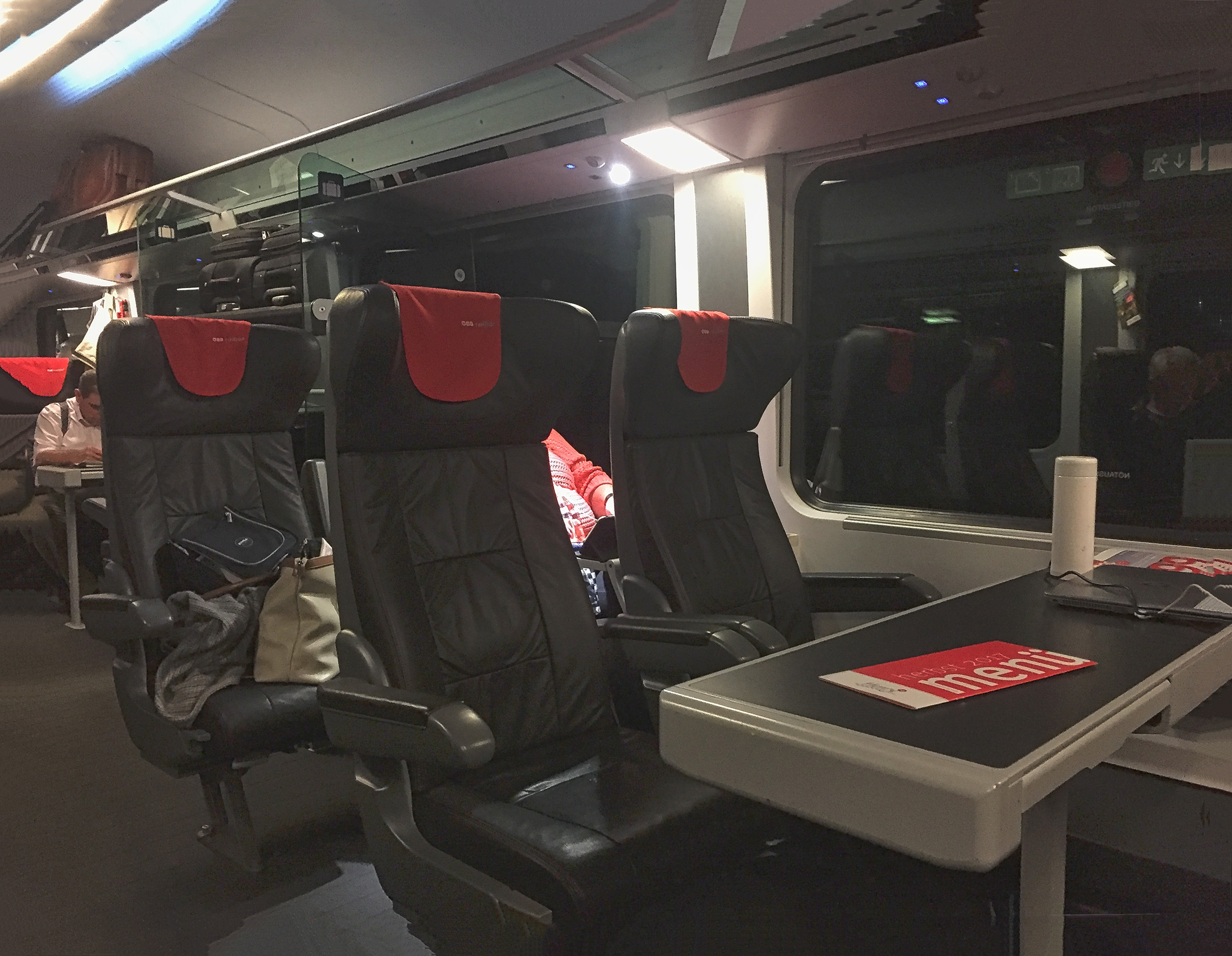 A shot of our favourite seating arrangement. This particular four seater was across from our two seater. The neat thing about First Class, is you get table service from the restaurant. Only one time we indulged in this service when we returned to Vienna from Salzburg. Our arrival into Vienna was late evening and we knew we’d be too tired to find a place to eat.