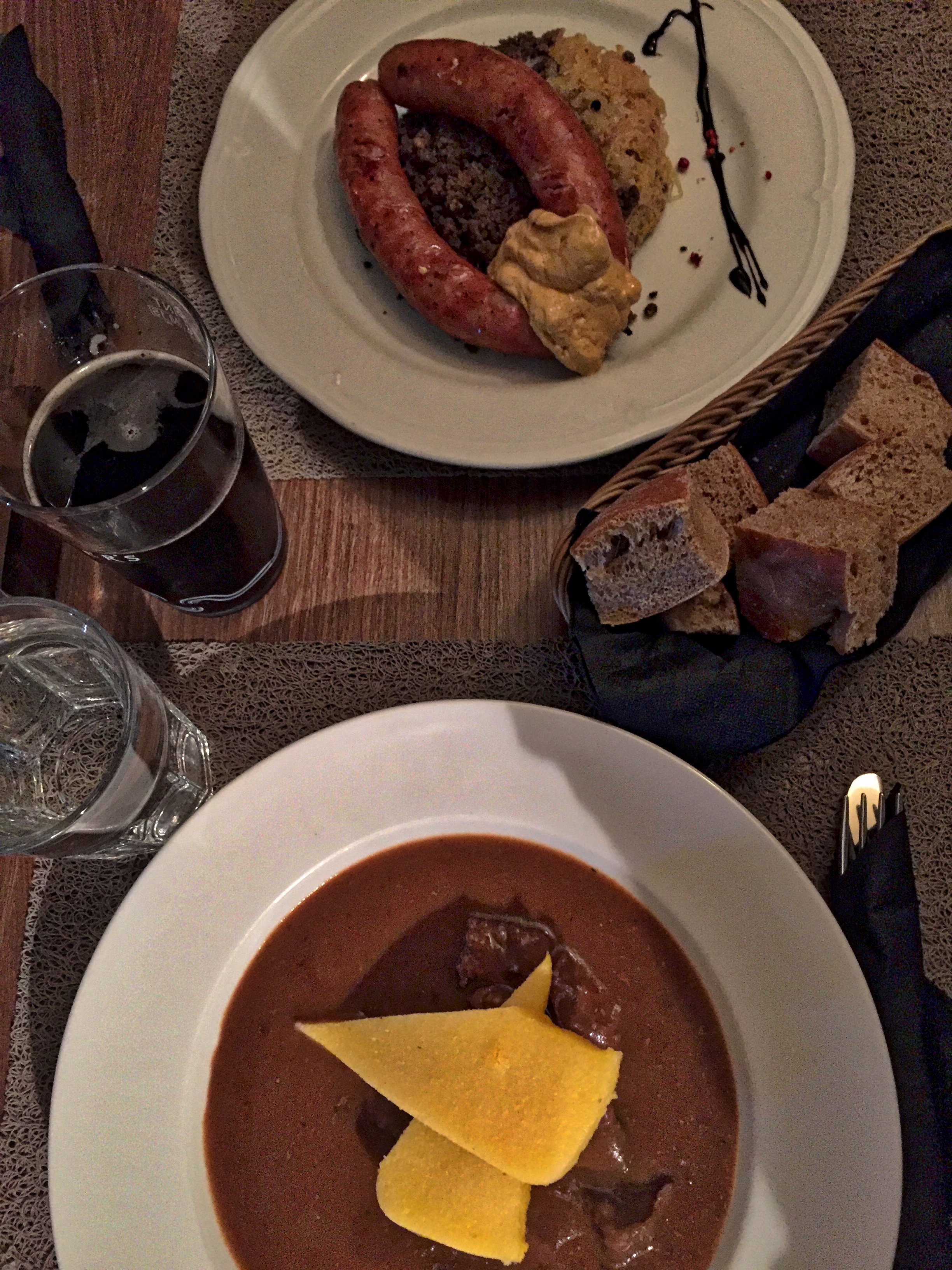Sausage with Sauerkraut & Mustard and Goulash with Polenta at “Paninoteka” in Ljubljana