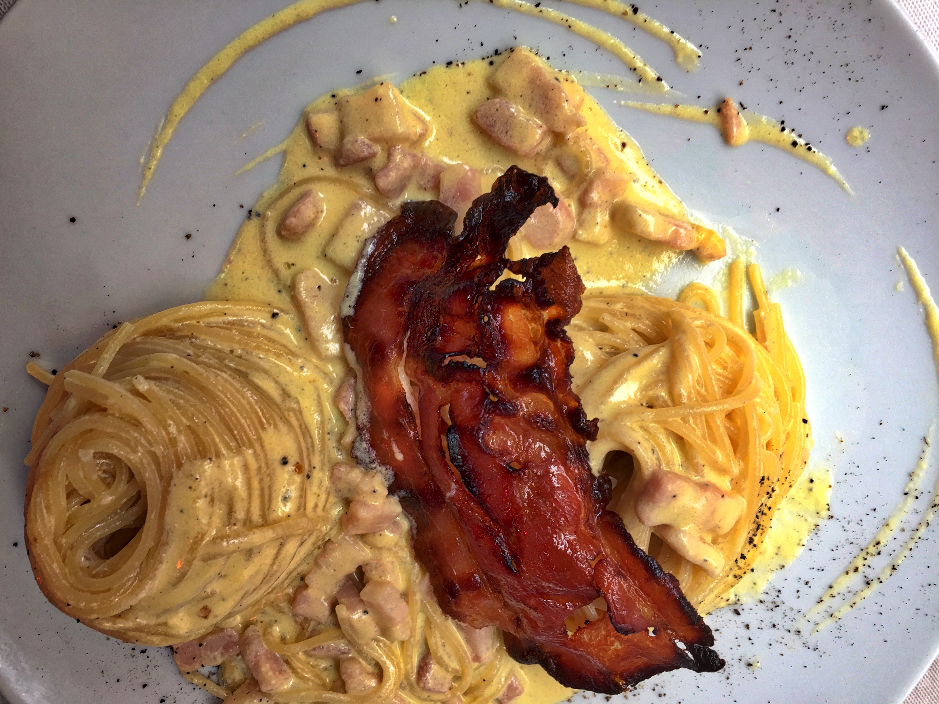 Spaghetti Carbonara at Piazza Walther in Bolzano