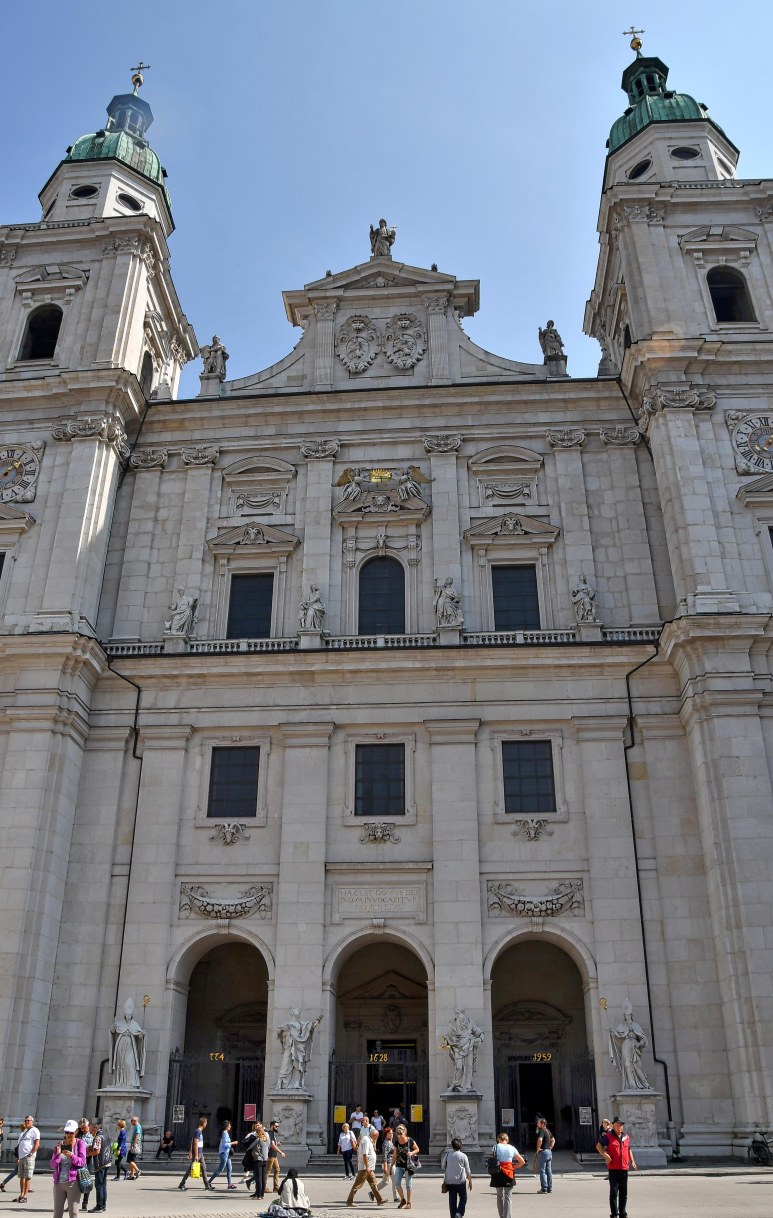 We head straightforward to Staatsbrucke. You can see Salzburg Cathedral in the distance.