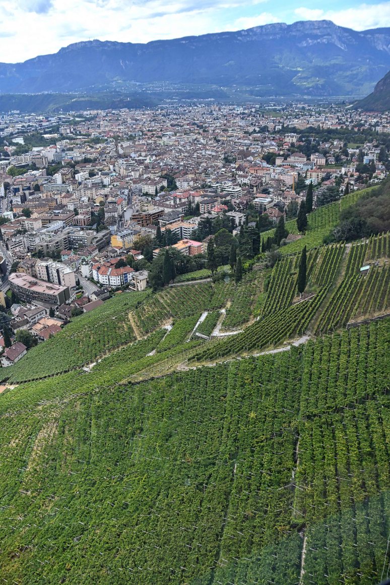 On the first morning of our visit to Bolzano, we took a walk along Talvera creek that runs north/south. We came across a gorgeous view of the hillside on the edge of the city. We were determined to make the climb a challenge after our lunch. With some research, we found a cable car (Rittner Seibahn) that departs from the nearby main train station. However, what we thought was a short ride to the top of the hill, actually was a 12 minute ride deep into the hills to a village called Oberbozen. We took a leisurely stroll through this delightful village. On our way down, we see the many vineyards that is a common local product.