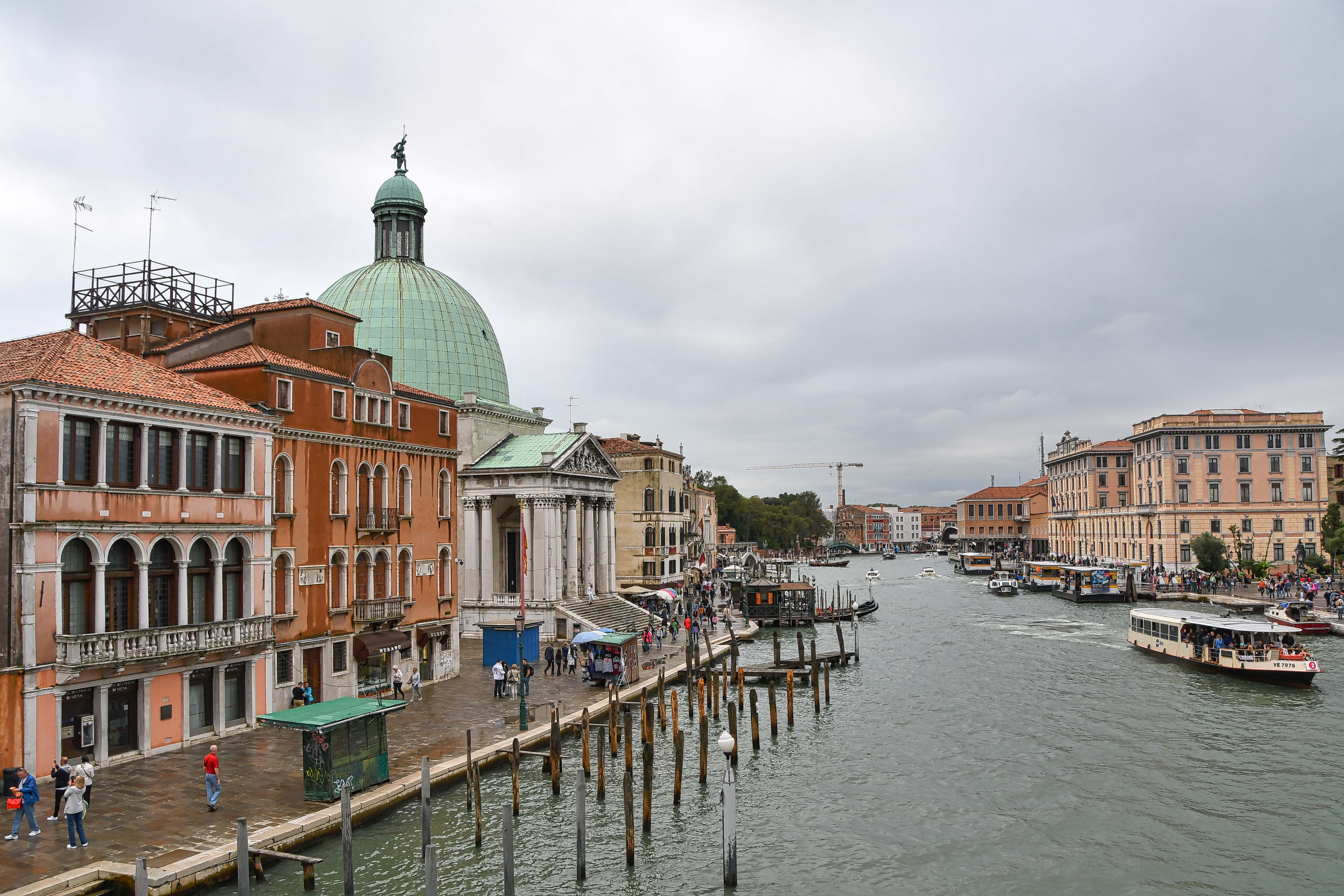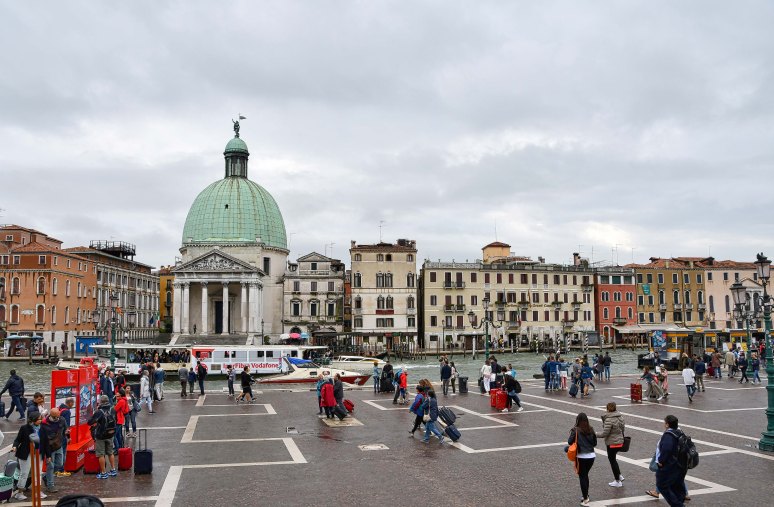 Emerging from the Santa Lucia Station, we see the Catholic Church, Chiesa de San Simeone Piccolo across the canal