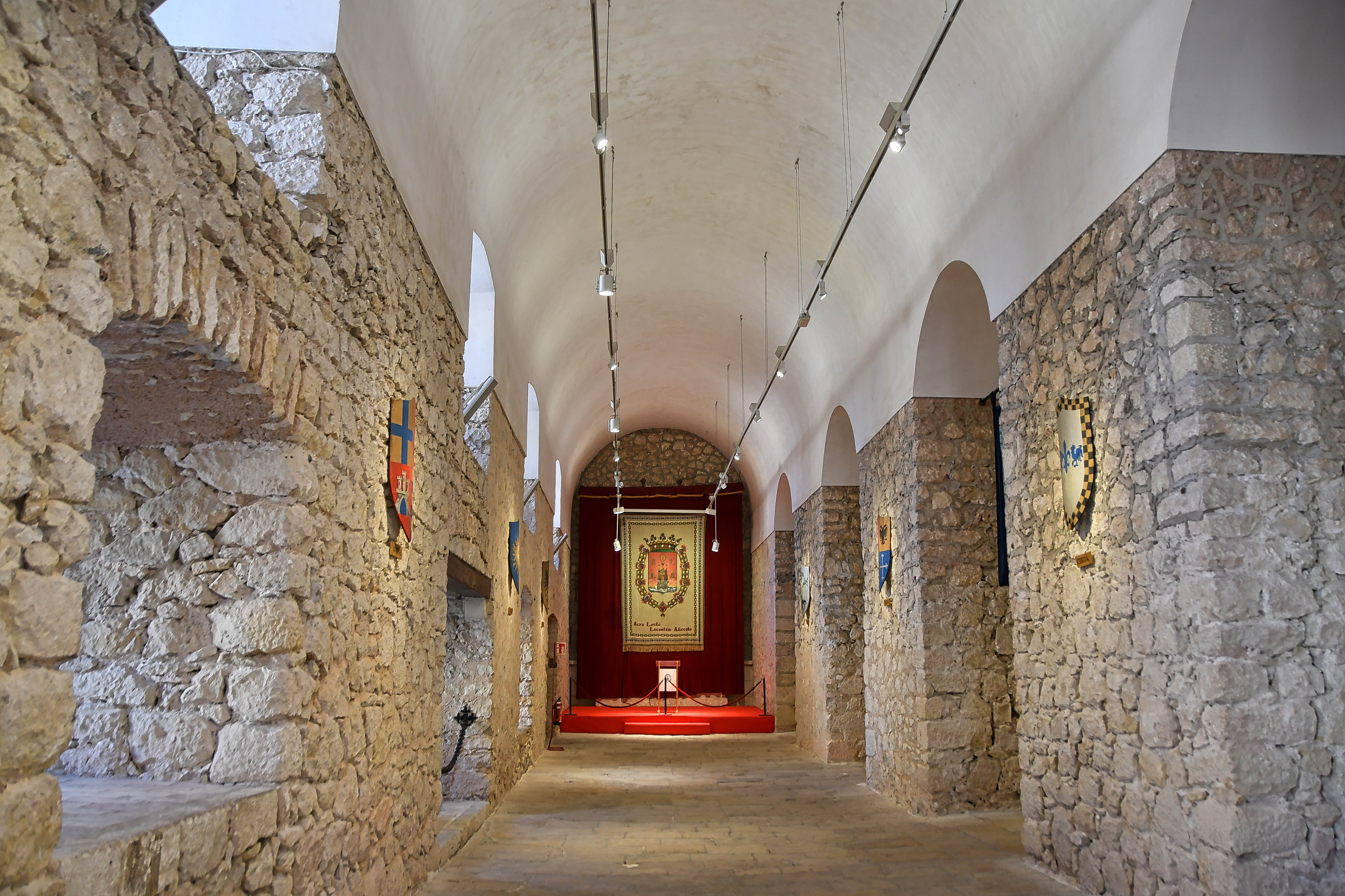 Inside the main entrance, wall displays different coat of arms that presided