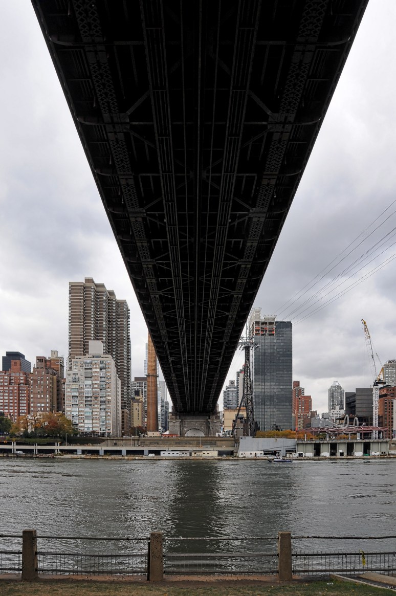 Underneath the Queensboro Bridge. The overhead tram cables can be seen to the right.